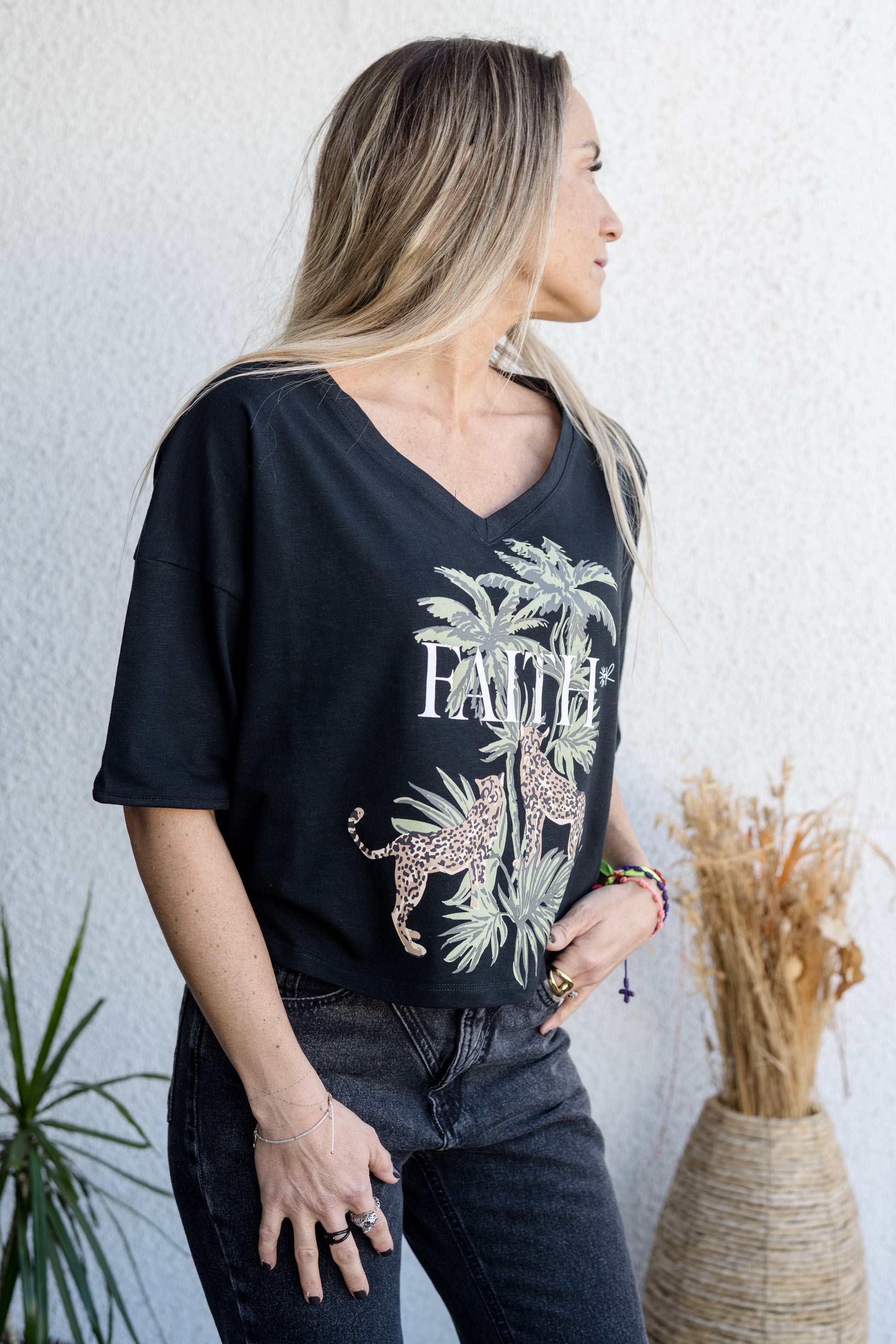 🐆 Polera Faith Negra – Tigres & Palmeras