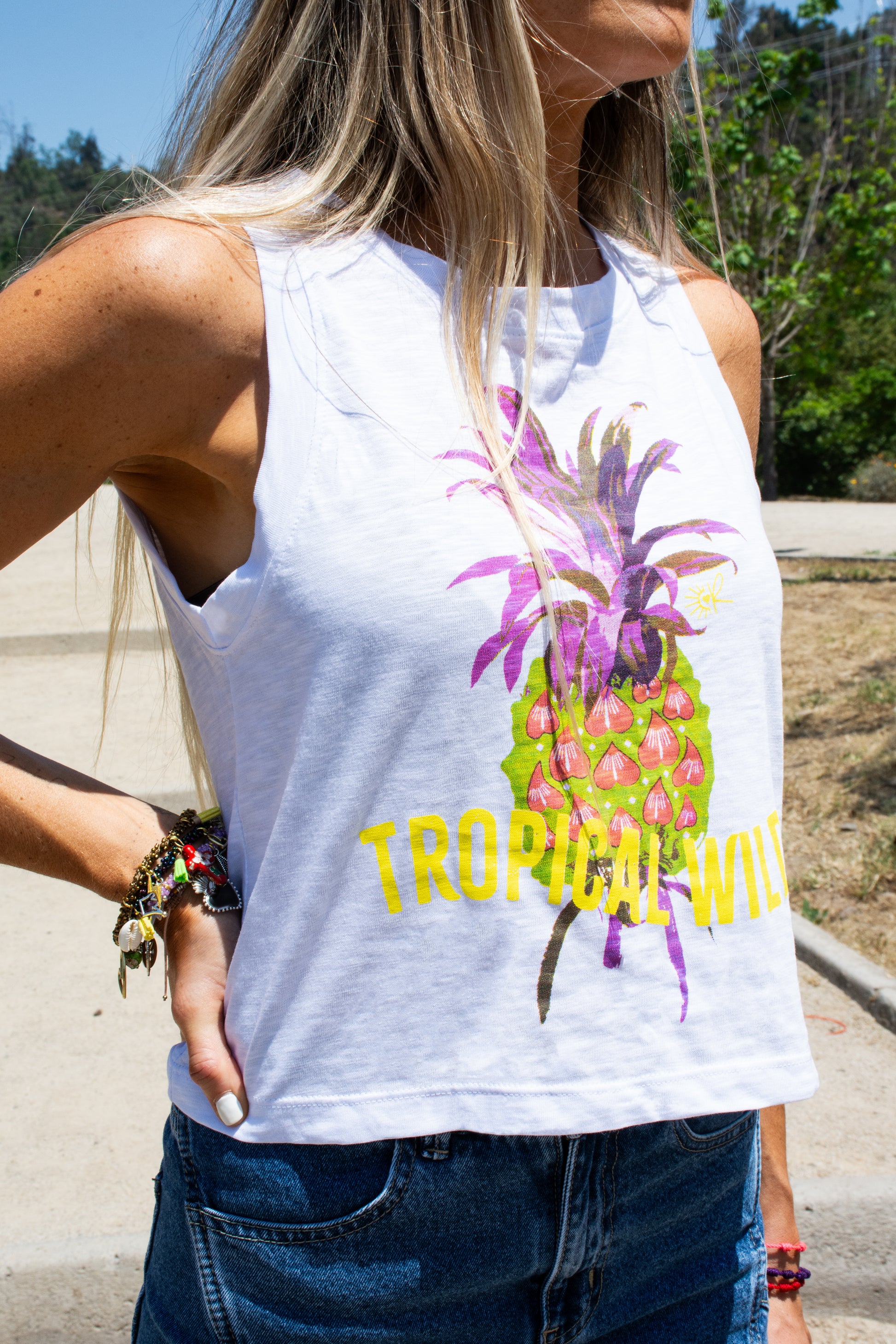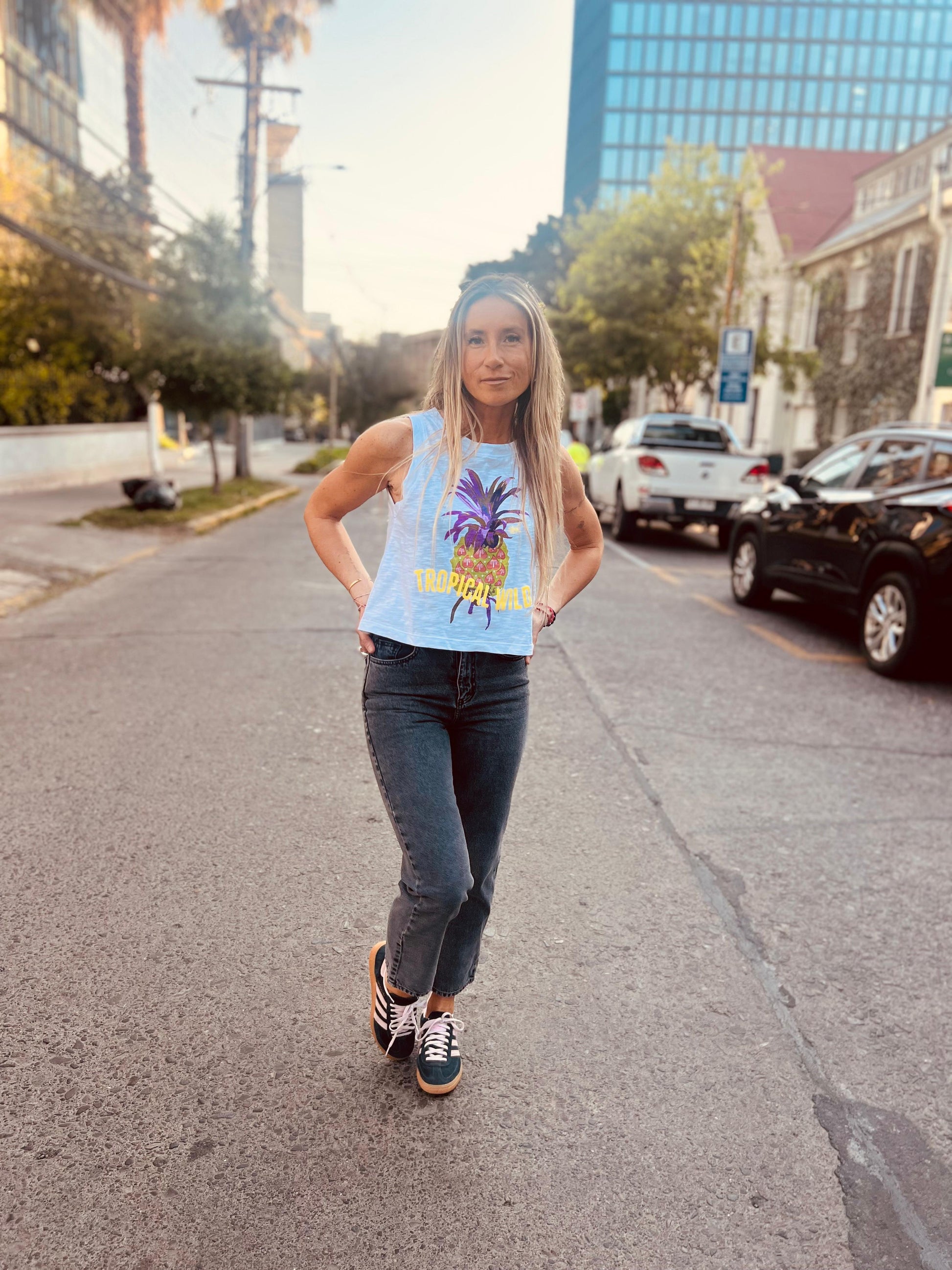 Esta polera blanca es una prenda fresca y alegre, perfecta para los días de verano. Su vibrante estampado de piña tropical sobre un fondo blanco añade un toque divertido y colorido a tu outfit. Confeccionada en Chile con materiales de alta calidad, esta polera está hecha de 100% algodón, garantizando suavidad y confort durante todo el día.