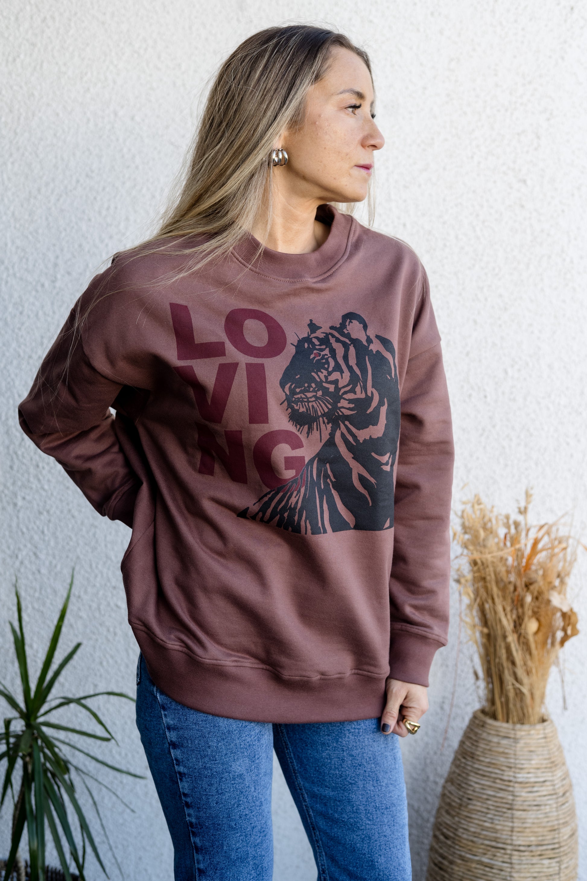 Nuestro Polerón Oversize Loving Tigre es un statement visual y emocional. Diseñado con un calce relajado y cómodo, su fit oversize es ideal para quienes aman la libertad de movimiento sin perder estilo. El estampado de tigre junto a la palabra LOVING representa el equilibrio perfecto entre carácter y amor.